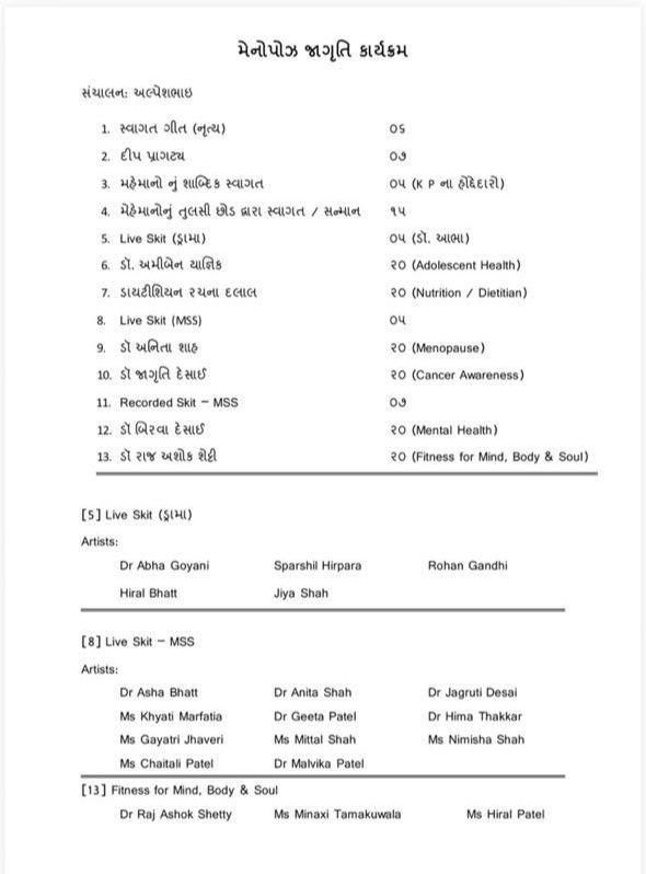 21 women were benefited of – Height,weight, BMI, BMD, CBC, FBS, TSH, BMD,BP,Pelvic Ultrasound,Oxygen level with gynec Consultation. Calcium tablets distribution was done.an awareness talk about Menopause was also given by Dr Jagruti Desai.